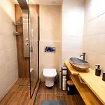 Vous pourrez profiter d'un équipement de repassage pour un séjour confortable, ainsi que d'une TV par câble avec des films à la demande et d'une TV avec chaînes satellitaires. Outre d'un canapé et d'un bureau, l'intérieur dispose d'une cheminée en pierre. Les salles de bains comprennent également des toilettes séparées et une douche. Vous pourrez également profiter de la commodité des articles de toilette pour les hôtes.